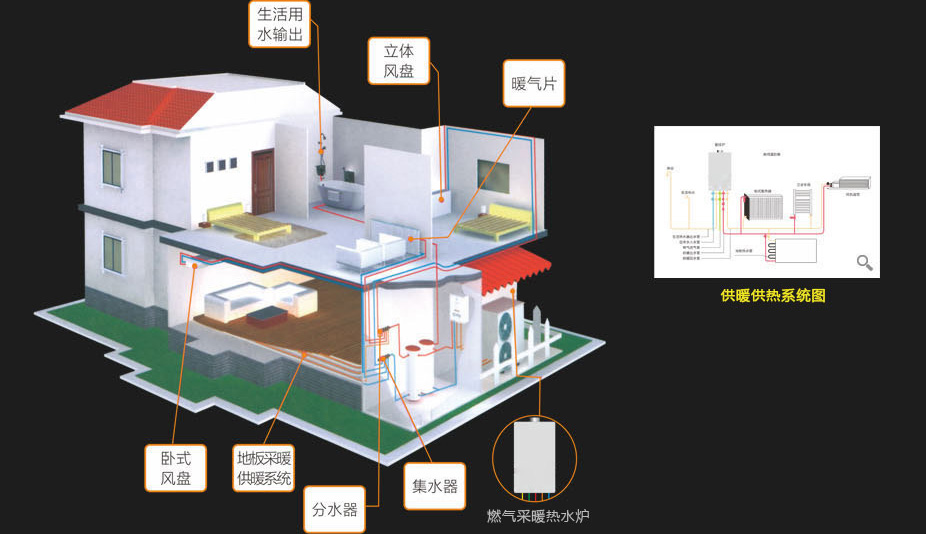 衛生熱水解決方案,滿足各種室內取暖及衛生用水需求,分時段選擇適合的采暖溫度,經濟運行的回報是節能和環保。